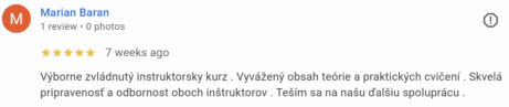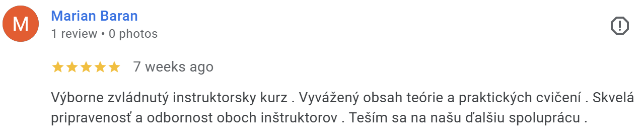 Výborne zvládnutý inštruktorský kurz. Vyvážený obsah teórie a praktických cvičení. Skvelá pripravenosť a odbornosť oboch inštruktorov. Teším sa na našu ďalšiu spoluprácu.